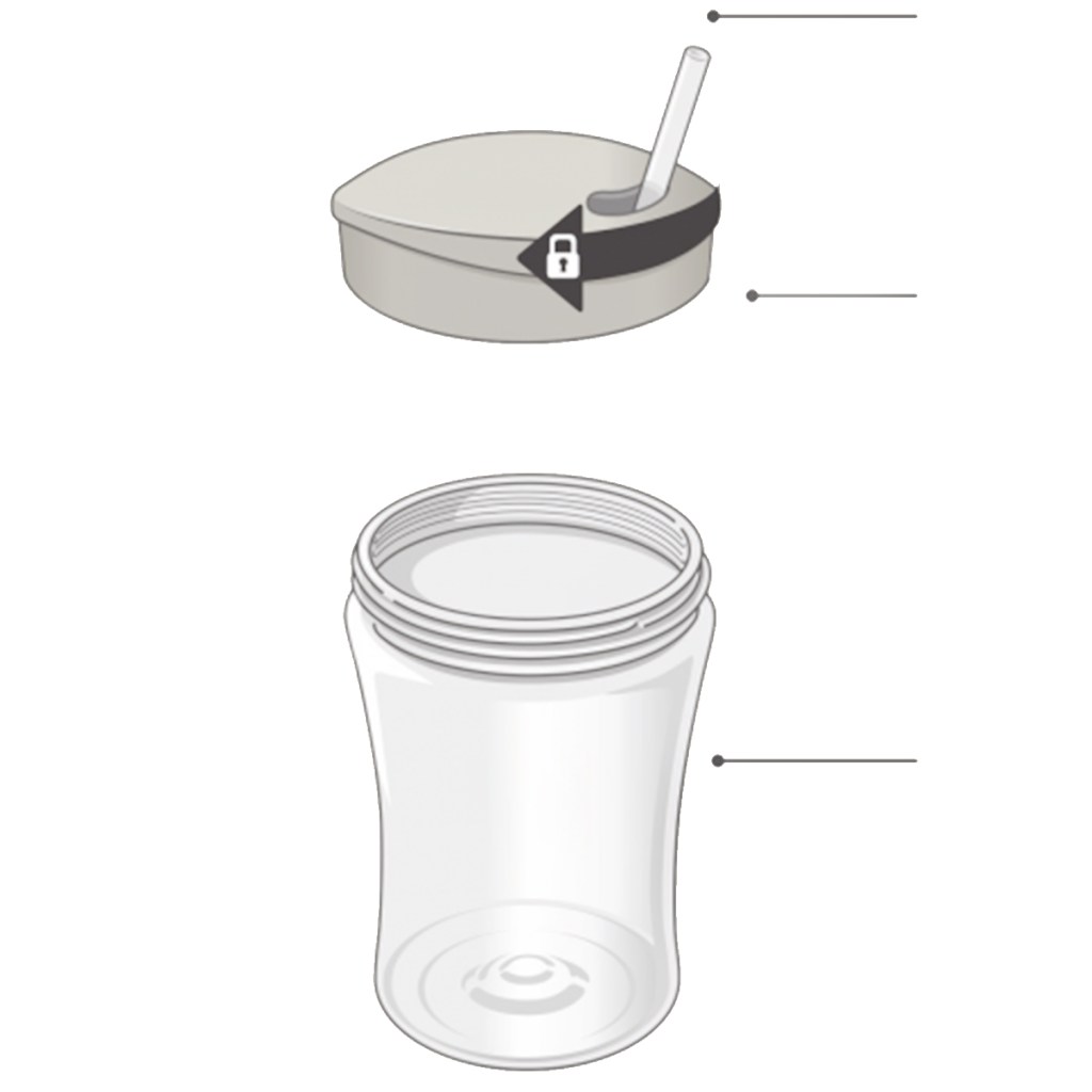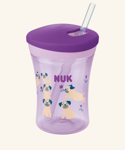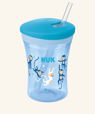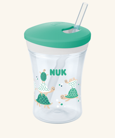 Este vaso NUK Action Cup es compatible con todos los artículos de la Línea NUK Evolution.